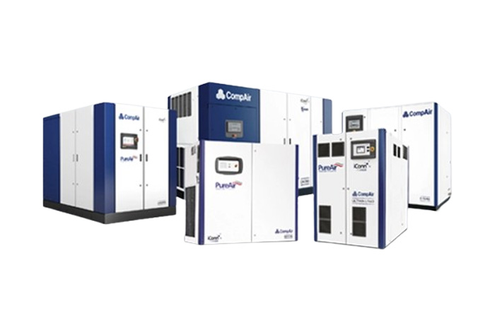 Al Bogheil offers a comprehensive range of lubricated rotary screw air compressors from 2 to 250 kW, airflows from 0.24 to 47 m3/min and pressure ranges from 5 to 13 bar.